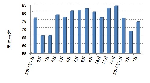 1-3月份,全國規(guī)模以上電廠發(fā)電量12719億千瓦時(shí),同比增長5.8%,增速比上年同期提高2.9個(gè)百分點(diǎn)。其中3月份發(fā)電量4528億千瓦時(shí),同比增長6.2%,增速比上年同期提高4.1個(gè)百分點(diǎn)。
