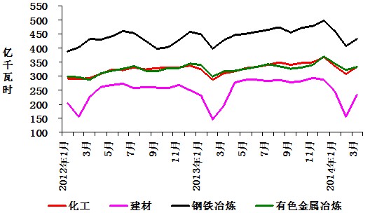 圖4: 2012年以來分月重點(diǎn)行業(yè)用電量情況