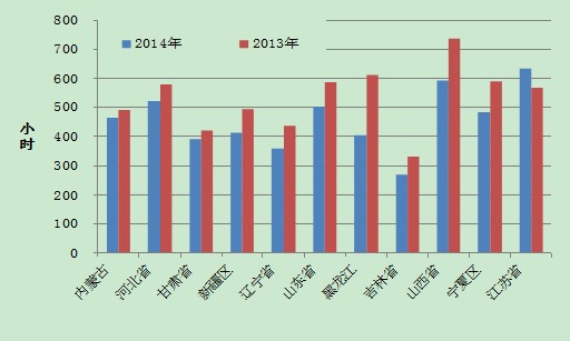 分類型看,1-3月份,全國水電設(shè)備平均利用小時(shí)551小時(shí),比上年同期降低47小時(shí);在水電裝機(jī)容量******的7個(gè)省份中,除云南水電利用小時(shí)同比增加64小時(shí)外,其他省份均呈下降態(tài)勢,其中廣西、湖南、貴州分別降低180小時(shí)、214小時(shí)和226小時(shí)。全國火電設(shè)備平均利用小時(shí)1228小時(shí),比上年同期降低2小時(shí),降幅比1-2月份降幅減小12小時(shí);在火電裝機(jī)容量超過3000萬千瓦的10個(gè)火電大省中,山西、內(nèi)蒙古、山東、遼寧火電設(shè)備利用小時(shí)分別提高59、39、24、13小時(shí),河北和浙江分別下降65小時(shí)和54小時(shí)。全國核電設(shè)備平均利用小時(shí)1840小時(shí),比上年同期增加17小時(shí)。全國風(fēng)電設(shè)備平均利用小時(shí)479小時(shí),比上年同期降低56小時(shí);分省來看,在風(fēng)電裝機(jī)超過200萬千瓦的省份中,除江蘇提高65小時(shí)外,其他省份風(fēng)電設(shè)備利用小時(shí)均有所下降;遼寧、吉林、甘肅分別僅有359、270、393小時(shí)。