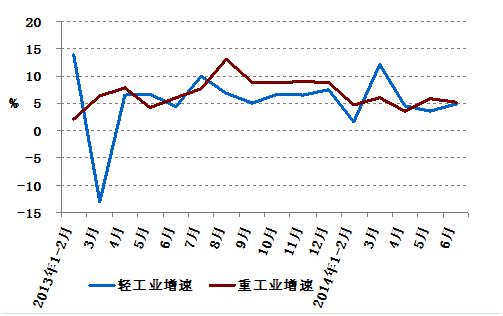 圖2: 2013年以來分月輕、重工業(yè)用電量增速情況